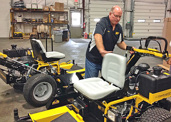 Dave Krendl of Cool Machines Inc. in Van Wert (shown above with two of the machines) announced a new line of zero-turn mowing machines on Friday morning during a meeting of the Ohio State Extension-Van Wert Economic Development Advisory Group. The mowers also have the ability to convert to a push mower – making them ideal for hilly terrain and other challenging landscape areas. Krendl said the mowers were the products on the market right now using this technology. The machines will be marketed under the Cool Machines name, although there will be some assembly by other companies under contract with the local business. Krendl said he was currently putting together a retail sales staff to market the mowers. (photo submitted)
