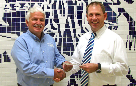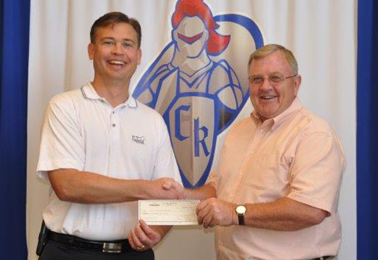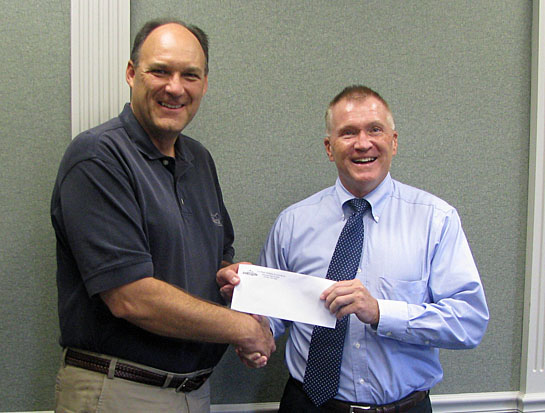 In celebration of Van Wert Federal Savings Bank’s 125th anniversary, the bank made a contribution of $5,000 to each of the three county high schools: Van Wert, Lincolnview, and Crestview. The schools can use the money in any way that will benefit their students. Van Wert Federal has always been a strong supporter of, not only education, but also of the local arts and non-profit organizations in the county. Van Wert Federal has been in operation since 1889, making it the oldest locally owned and operated bank in the county. It is also recognized as the strongest financial institution in the county and also one of the strongest in the United States. Above, Phil Bair of Van Wert Federal presents a check to VWCS Superintendent Ken Amstutz. Below (top photo) Mark Schumm of VW Federal presents a check to Crestview Superintendent Mike Estes, while (bottom photo) Gary Clay of VW Federal presents a check to Lincolnview Superintendent Jeff Snyder. (photos submitted)