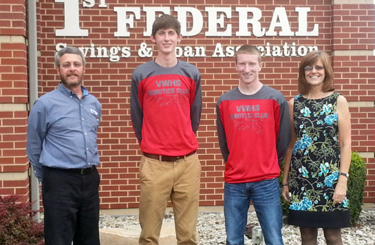 Two local financial institutions, Van Wert Federal Savings Bank (below) and First Federal Savings & Loan of Van Wert (above), have each committed to sponsoring the Van Wert High School Robotics Team at $1,000 per year. “The outpouring of support from Gary Clay, Brian Renner and their staff and board of directors at our local banks is going to allow us to purchase the competition fields needed for the Northwest Ohio Robotics Competition to be held here at Van Wert High School on January 17,” said VWHS Robotics Team Coach Bob Spath. “We are so thankful for all of the donations in order to sustain this academic team for the future.” (submitted photos)