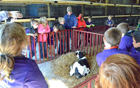 Local students had the chance to learn about how food gets from “Soil to Spoon” during Tuesday’s Cows to Plows event held at the Van Wert County Fairgrounds. The event teaches students about several agribusiness-related areas, including water and soil quality, crop and livestock production, GPS and other farm technology, farm history, and processing and marketing. Sponsors of this year’s event include Advanced Biological Marketing, Ag Credit, Cooper Farms Cooked Meats, D&D Ingredient, Van Wert County Farm Bureau, 4-H Council, Heritage Farm Equipment, Kennedy-Kuhn Inc., Lincolnview Young Farmers, Maumee Watershed Conservancy District, Save-A-Lot, the county Solid Waste Management District, Van Wert SWCD, Wrenco Trophy & Sportswear and the Lincolnview and Crestview FFA chapters. Here, students from Kathy Fleming’s fourth-grade class at Van Wert Elementary School learn about livestock production from local dairy farmer Dennis McCoy. (Dave Mosier/Van Wert independent)