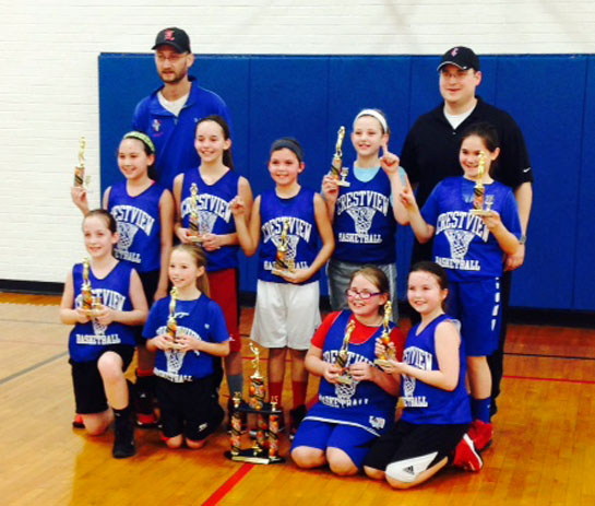 The 2015 YMCA Third and FourthGrade Girls’ Basketball Tournament concluded this past Sunday. The Crestview Knights (shown) took first place in the third-fourth grade divisions (First Picture, while the Sixth Grade Division was won by the Bath Wildkittens.(YMCA photo)