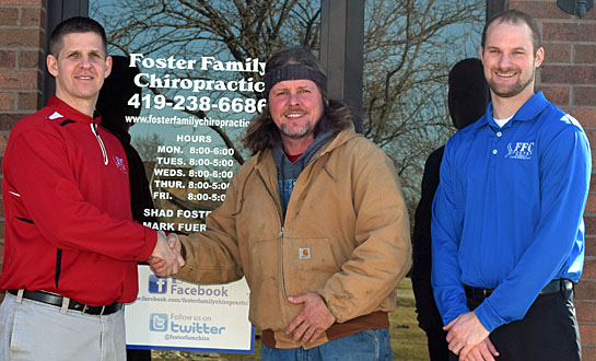 Foster Family Chiropractic will be sponsoring a $1 day at Camp Clay Aqua Park this summer. Local businesses purchase the day for the Van Wert community, while access includes swimming, a floating playground, a zipline, paddleboats, a half-acre beach and the 3,600 square foot splash pad, which is new in 2015. To learn more, visit the YMCA website at www.vwymca.org. Shown are Shad Foster (left) and Mark Fuerst (right) from Foster Family Chiropractic with Clint Myers, Camp Clay Aqua Park director(YMCA photo)