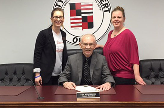 Van Wert Mayor Don Farmer has issued a proclamation supporting the YWCA’s Stand Against Racism campaign to build community among those who work for racial justice and to raise awareness about the negative impact of institutional and structural racism in local communities. The campaign is one part of a larger national strategy to fulfill the YWCA’s mission of eliminating racism. The mayor is shown signing the proclamation while YWCA representatives look on. (photo submitted)