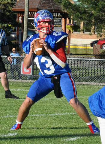 Wayne Trace quarterback Colby Speice was the man of the hour for the Lima area/NWC team, which downed the WBL 30-7 in Friday's Van Wert County Hospital All Star Football Game. (Jan Dunlap/Van Wert independent)