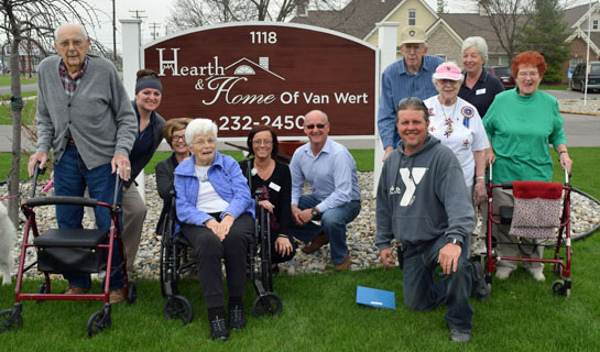 Hearth and Home will be sponsoring a $1 day at Camp Clay Aqua Park this summer. Local businesses purchase the day for the Van Wert community, access includes swimming, floating playground, zipline, paddleboats, a half-acre beach and the 3,600-square-foot splash pad, which is new in 2015. To learn more, visit the YMCA website at www.vwymca.org. Shown are Merrill Good, Doris Hart, Jen Salizar, Melissa Schaffer, Amanda Chesbro, Jeff Buggle, Marian Morris, Kim Webster, Gloris Ford, Frank Conn and residents’ dog Venus from Heath & Home, with YMCA Camp Clay Director Clint Myers. (YMCA photo)
