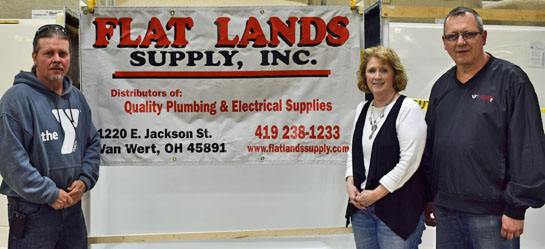 Flatland Supply will be sponsoring a $1 day at Camp Clay Aqua Park this summer. Local businesses purchase the day for the Van Wert community, access includes swimming, floating playground, zip-line, paddleboats, a half-acre beach and the 3,600-square-foot splash pad, which is new in 2015. To learn more, visit the YMCA website at www.vwymca.org. Shown are Jerry Koenig and Ava Scheidt of Flatland Supply with YMCA Camp Clay Director Clint Myers. (YMCA photo)