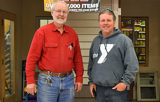 Hall Lumber will be sponsoring a $1 day at Camp Clay Aqua Park this summer. Local businesses purchase the day for the Van Wert community, access includes swimming, floating playground, zip-line, paddleboats, a half-acre beach and the 3,600-square-foot splash pad, which is new in 2015. To learn more, visit the YMCA website at www.vwymca.org Shown are Jon Hall (left) of Hall Lumber with Camp Clay Director Clint Myers. (YMCA photo)