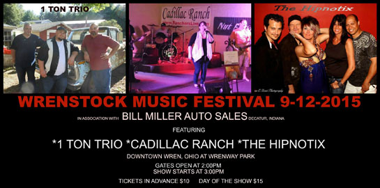 Come to Wren September 12 and celebrate with WrenStock organizers. For more information, call 419.495.2752 or 419.495.2623.