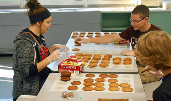 Members of the Senior Class at LifeLinks Community School are shown packaging cookies for the Van Wert County Special Olympics pork chop/chicken carry out dinner, which was held September 23. This was the first service project of the school year. A total of 480 cookies were baked and packaged for this event, which will become an annual project during the spring and fall. (photo submitted)