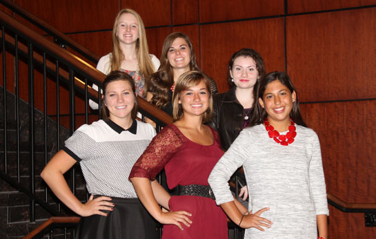 The Van Wert High School Student Council announces this year’s 2015-2016 Homecoming Court. Homecoming ceremonies will take place this Friday, October 9, at Eggerss Stadium, starting at 6:30 p.m. Homecoming Court members include senior queen candidates (front row, from the left) Katie Trittschuh, Phoebe Eutsler, and Allison Moreland; (back row) Noelle Heffner, freshman attendant; Taylor Peebles, junior attendant; and Skylr Andrews, sophomore attendant. (VWHS photo)