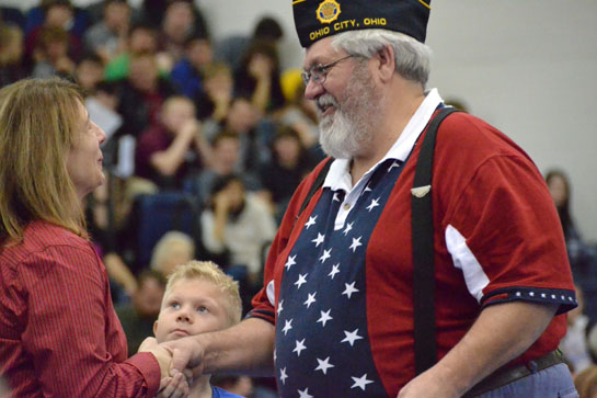 A veteran receives a certificate during a previous Lincolnview Veterans Day celebration. (VW independent file photo)