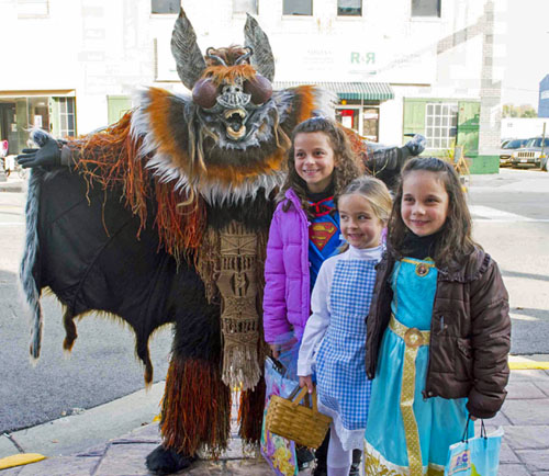 Along with candy and treats, children and adults alike will enjoy marveling at, and having their photo taken beside, the famous and imaginative creatures Judy Geary will be bringing to roam the sidewalks.