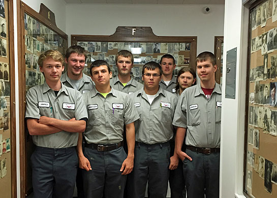 Students in Vantage Career Center’s Carpentry classes who built the large picture frames that hang on the outer walls of the Veterans Chapel, located in front of the Van Wert County Courthouse, include (front row, from the left) Jared Stienecker, Brad Rice, Sebastian Brown, Josh Buerkle; (back row) Lane Bennett, Christian Prowant, Isaiah Miller, and Anthony Whitaker. (photo submitted)