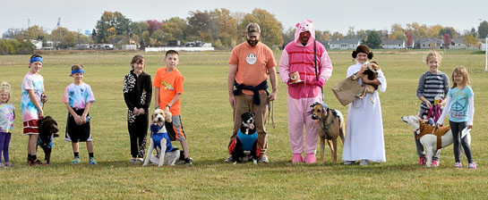 The Van Wert County Humane Society hosted a Howl-A-Ween fun run and agility course this past Saturday. Dressed up animals and owners participated in a 1-mile walk/run and were able to try out various agility course obstacles and a bobbing for hot dog station. Costume contest winners are pictured. Event sponsors included 540 Martial Arts, Ace Hardware, Angela’s Dog Grooming, B&K Root Beer Stand, Brewed Expressions, Buckeye LawnScape, Century Bar, CJ Sidepockets, Collins Fine Foods, Dog House Grooming, Edward Jones/Ryan Lindemann, Emme Lu’s Pet Grooming, EveryBodies Therapeutic Massage, Fastenal, Fricker’s, Girl Scout Troop 20663 in Rockford, Girl Scout Troop 20182, Girl Scout Troop 20184, H&R Block, Hegemier Tire Service, Impressions Salon, Marsh Grocery Store, MOD Boutique, Once I Was, One Hour Cleaners, Bobby Pins at Open Minded, Peking Restaurant, Rhoades Insurance, Snappy Cut, The Embroidery Coop, Thomas Edison Center, T-N-T Tattoos, Truly Divine, Vancrest, Van Wert Cinemas and Years Ago Antique Mall. (photo submitted)