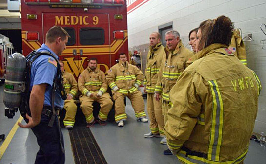 Local American Red Cross Disaster Team members got a chance to spend some “non-stressful” time with the Van Wert Fire Department. Disaster Team Director Mark Klausing and Van Wert Fire Chief Jim Steele both thought it would be helpful if Red Cross volunteers could experience what firefighters do during a fire. A scenario was created of a person trapped in a burning home and Disaster Team members had to suit up and rescue the person. “Our Disaster Team now knows what the firefighters undergo in a burning home and how important it is to cool down and hydrate them when they come out,” Klausing said. The Disaster Team is now creating a scenario to let firefighters know what the Red Cross does on scene to assist victims. Red Cross Disaster Team members include Klausing, Greg Roberts, Rodney Knauss, Lori Kreischer, Amy Schroeder, Beth Marchek, Daron Showalter, and Alexander Stump. (photo submitted)