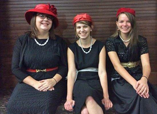 Three cast members of the upcoming Van Wert High School production of Mr. Hobbs' Vacation pose in costume. (VWHS photo)