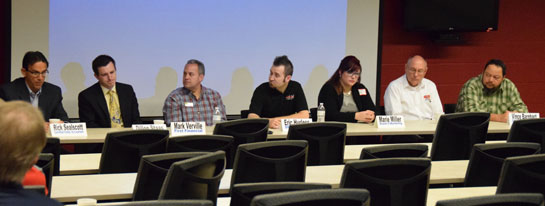 A number of local residents learned more about starting their own businesses during Saturday’s Entrepreneurship Fair, held in the Community Room of Vantage Career Center in Van Wert. Here, a panel of experts that includes accountants, insurance agents, realtors, bankers, and attorneys, talks about what is needed by those planning to start a business. (Dave Mosier/Van Wert independent)