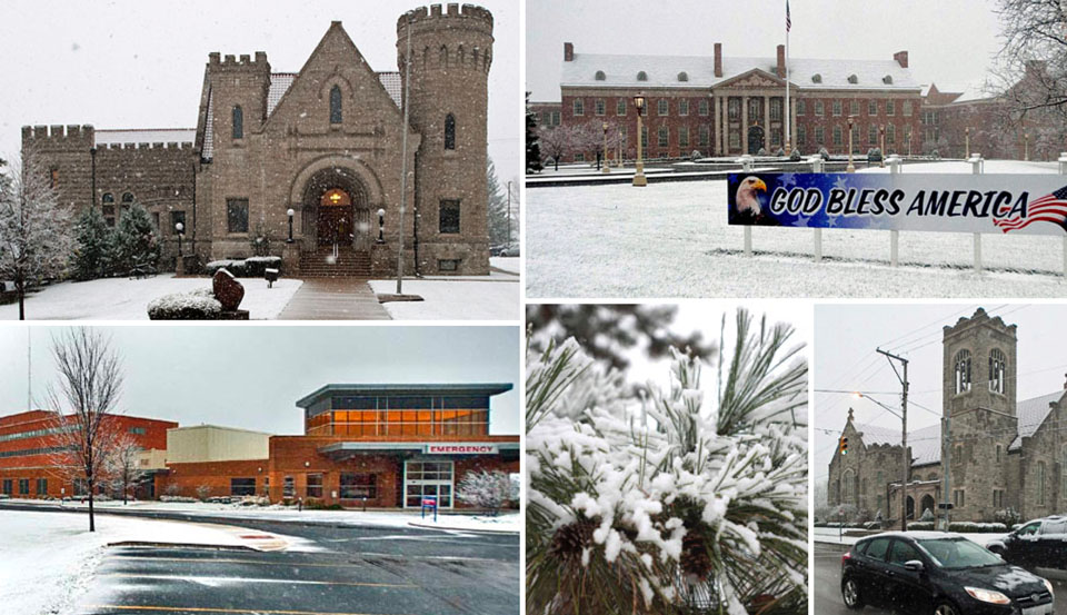 The first snowfall of the season fell on Saturday, with several area communities compiling impressive snowfalls, according to Van Wert County Emergency Management Director Rick McCoy. While Van Wert had around an inch, Convoy reported 3 inches, while Fort Wayne, Indiana, had 4.1 inches, Defiance had 3 inches, and Chicago had 18 inches. Above are some snow scenes around Van Wert. (photos by Bob Barnes/Van Wert independent)