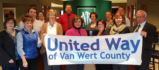 Citizens National Bank finished its 2015 United Way of Van Wert County campaign with 100 percent participation from employees. The bank also donated supplies to residents of the women’s shelter at the YWCA, a United Way agency. The United Way is currently conducting its 2015-2016 campaign to help support 25 agencies in Van Wert County. (United Way photo)