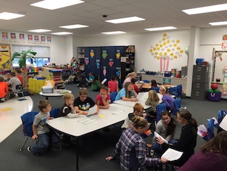 Matt Langdon’s sixth grade Language Arts class has been writing fairy tales in their classroom and had the opportunity to share them with the kindergarten classes. (Photo submitted.)