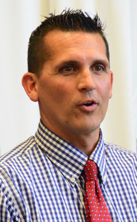New Crestview Girls’ Head Basketball Coach Mark Gregory attended Thursday’s board meeting.