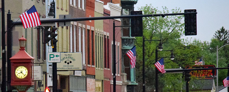 New American flags are flying in Van Wert’s downtown area, thanks to a number of generous donors and the efforts of the Van Wert Area Chamber of Commerce’s 2016 Leadership Class. The flags are up in time to celebrate the patriotic Memorial Day and Fourth of July holidays (see related letter to the editor on the Opinion Page). (Dave Mosier/Van Wert independent)