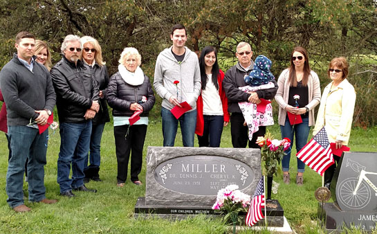 Isaac Van Wart Chapter, Daughters of the American Revolution, met recently at Woodland Cemetery to dedicate the graves of Cheryl Army Miller and Marjory Hattery Jones, two members who passed away in 2015. Shown are members of Miller’s family who attended the service: Zachary Army, Danielle Army, Lynn Army, Patricia Army, Barbara Steptoe, Matthew Miller, Stacie Miller, Dr. Dennis Miller and Victoria, Bethany Army, and Mickey McConahay. (photo submitted)