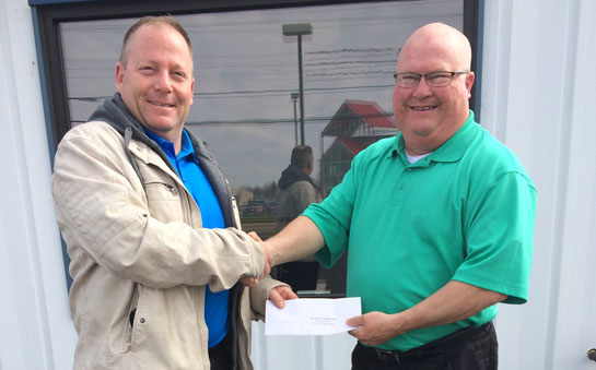 Van Wert Knights of Columbus Council 6034 donated $500 to Van Wert Youth Baseball to sponsor a team for the 2016 baseball season. The Knights of Columbus have been a sponsor of youth baseball in the Van Wert area for decades, providing financial support so that all kids have the opportunity to play summer ball. The K of C is an international, non-profit Catholic fraternal organization dedicated to the service of mankind. In 2015, Council 6034 donated more than $7,000 to community, church, culture of life, and youth activities in the Van Wert area. Shown are Jeff McIntosh (right) of the Knights of Columbus and Van Wert Youth Baseball representative Eric McCracken. (photo submitted)