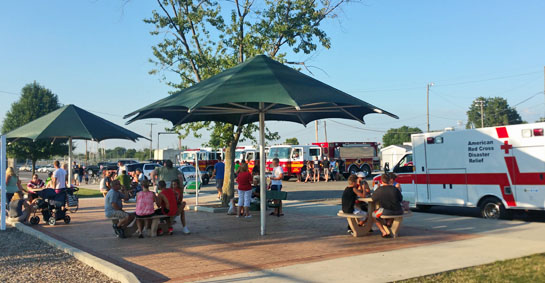 The Van Wert Red Cross Disaster Team joined Delphos’s team on National Night Out. The night was for emergency responders to join together so the community can meet and socialize with them. The night appeared to be a big success, as community members also got to enjoy blow-up bouncy toys, food, drinks, door prices, a DJ, and free swimming at the Delphos pool. “This was a great idea,” said Mark Klausing, Van Wert Disaster Team leader “It was so nice to meet and talk to the community in a relaxed atmosphere. Emergency responders and Red Cross have been so busy lately, this was a great relief for us.” (photo submitted)