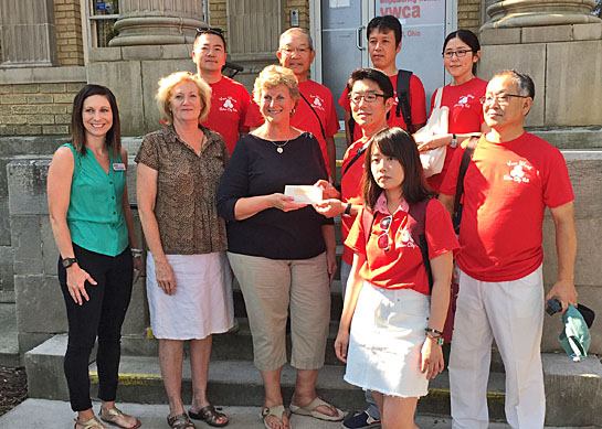 The delegation from Van Wert’s Sister City, Sumoto, Japan, recently made a donation to local women’s shelter programs operated by Crisis Care Line/House of Transition and the YWCA of Van Wert County during its visit to Van Wert. Here, delegation representatives present checks to (from the left) Jamie Evans of the YWCA and Leslie Wilkin and Janice Crummey of Crisis Care Line. (photo submitted)