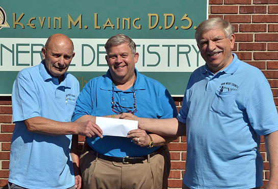 Van Wert dentist Dr. Kevin Laing donated $100 to the Van Wert County Historical Society to be used for the Railroad Heritage Weekend, which will be July 29-30 at the Van Wert County Fairgrounds. Shown are (from the left) Bill Stanley, Dr. Laing, and Chuck White. (photo submitted)