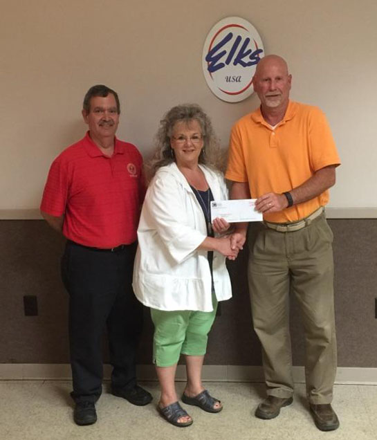 The Golf Outing Committee of Elks Lodge 1197 in Van Wert recently made a donation of $400 to the Ohio City Park Association. Presenting the check to Brenda Weaver are golf outing committee members Paul Cuccairre and Brett Thatcher. (Photo submitted)
