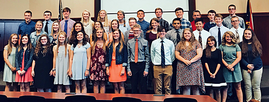 The Van Wert High School Beta Club recently held its induction for new members on September 24 in the Niswonger Performing Arts Center Lecture Hall. Beta Club is an academic organization whose motto is “let us lead by serving others”. The principles of Beta include academic achievement, service, character, and leadership. The VWHS Beta Club chapter, which welcomes 36 new members, embraces several projects throughout the year, including the VWHS homecoming dance, school recycling, sports concessions, participating in Kids Against Hunger, and will be working with The Salvation Army in the near future. VWHS’ Beta Club focuses on both school and community service. (photo provided)
