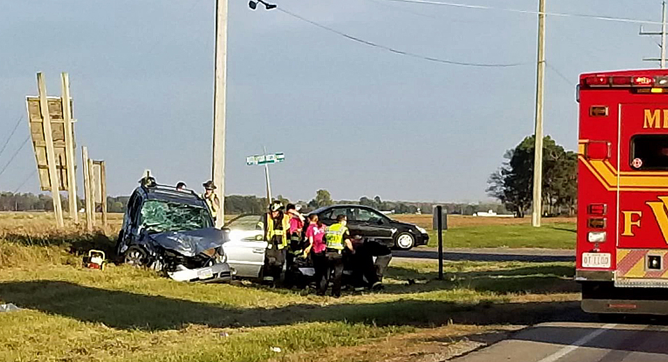 Three people were reportedly injured in an accident that occurred Saturday evening on Lincoln Highway, near the Van-Del Drive-In at the intersection with Middle Point-Wetzel Road. Two vehicles were involved in the accident (above), while those injured were taken to an unidentified hospital for treatment of injuries. No other information was released by the Van Wert Post of the Ohio State Highway Patrol, which investigated the accident. Scott Truxell/Van Wert independent