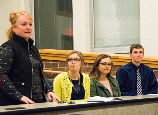 Also Monday, Senior Class advisor Kristy Ringwald accompanied Senior Class officers Frankie Carey, Laney Jones, and Dylan Neate to the meeting to talk about a trip planned for seniors to Cleveland on March 25-27, 2018. The students would tour the Rock and Roll Hall of Fame, as well as an art museum and other sights in Cleveland, and also spend time at the Kalahari Resort in Sandusky. The trip would cost less than $100 per student, if at least 50 students sign up to go.