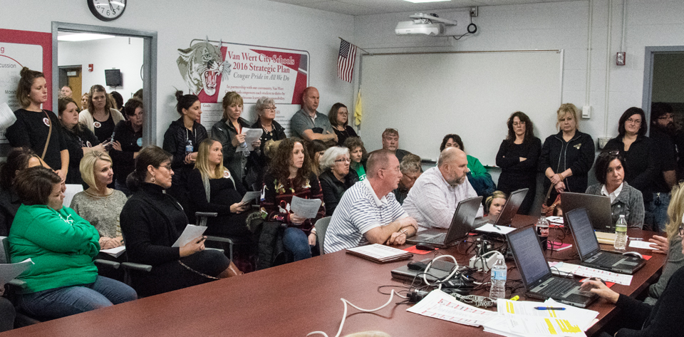 More than 100 active and retired teachers attended Wednesday’s Van Wert City Board of Education as a show of solidarity and to learn what the next step would be in contract negotiations.