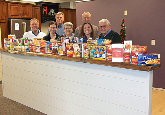 The employees of Alexander & Bebout Inc. and Kitchens Inc. held their 10th annual food drive in conjunction with A & B’s Christmas Party. The employees collected 130 food items during the drive. Games played at the Christmas Party netted a $475 contribution, along with a company match, allowed for a $950 donation to the United Methodist Cooperative Ministries Food Bank, in addition to the food donation. Shown are (front row from the left) Charlie Salway, Kristen Lange, Teresa Parrish, Sara Zura, and Tom Alexander; (back row) Charlie Wilkin and Stan Hitchcock. photo submitted