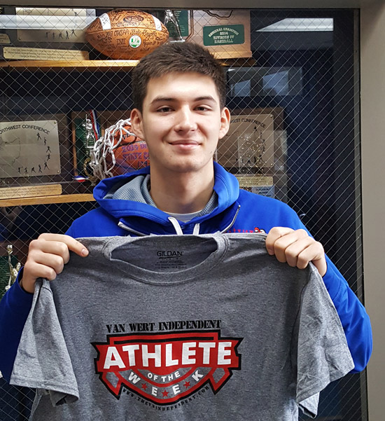 Crestview senior basketball player Derek Stout has been named as this week’s Van Wert independent/Northwest Ohio Welch Trophy Student Athlete of the Week. Stout, who was nominated by Athletic Administrator Dave Bowen, is a three sport athlete — golf, basketball and baseball — at Crestview High School. Coaches and athletic directors may nominate student athletes for the weekly award by e-mailing sports@thevwindependent.com. Winners will receive a T-shirt courtesy of Northwest Ohio Welch Trophy, 1034 Westwood Drive, Van Wert. Scott Truxell/Van Wert independent