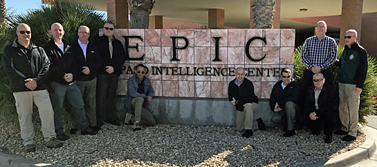 A delegation of Ohio law enforcement officials pose with the sign at the EPIC facility operated by the DEA in El Paso, Texas. photo submitted