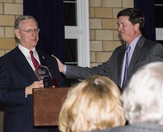 Local attorney Chuck Koch made the introduction for the award, noting Niswonger’s “Learn, Earn, and Return” mantra and his contributions to the local community, including his efforts on behalf of the performing arts center that bears his name, to which he donated $3 million and provided the vision for the current facility, Franklin Park, which he developed along with the Van Wert County Foundation and City of Van Wert, and new efforts to create a residential subdivision near the local schools on Ohio 118.