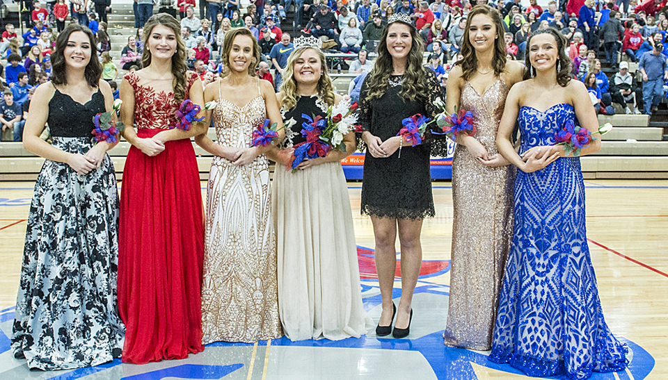 Crestview Winter Homecoming Queen Kara Strabbing poses with her court following ceremonies held between the junior varsity and varsity boys’ basketball games on Saturday. Bob Barnes/VW independent