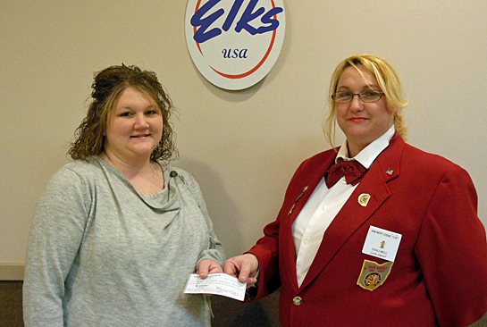 Van Wert Lodge 1197, Benevolent and Protective Order of Elks, recently donated $100 to the Van Wert Peony Festival Committee. The money goes toward the Peony Festival Scholarship Program. The Elks, nationally, are only second to the United States government in the number of scholarships given out each year. Van Wert Elks Lodge is proud to be a contributor each year to this important scholarship program. Shown are Peony Festival Pageant Director Kylie Mills (left) and Staci Bell, lodge loyal knight. Elks photo