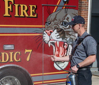 “I really wanted to put the community into our fire department,” the fire chief said, adding that the larger cougar head and scarlet-and-gray paint job showed his department was “loud and proud” in support of the community. “It turned out wonderful.”