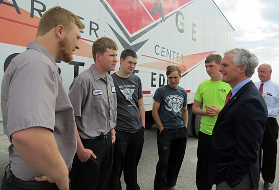 U.S. Representative Bob Latta talks to five Vantage seniors who are participating in the innovative new high school CDL truck driving program during a visit Wednesday at the school. After passing the test, the Vantage students will have their Class A CDL by the time they graduate from high school.Vantage photo