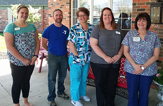 Van Wert Manor is sponsoring a Business Day at the YMCA’s Camp Clay Aqua Center on Wednesday, June 22. Because of the sponsorship, those using the Aqua Center that day will pay only a $3 admission charge. Shown with Camp Clay Director Kevin Morrison are four Van Wert Manor staff members. YMCA photo