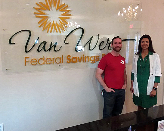 Van Wert Federal Savings Bank is sponsoring a Business Day at the YMCA’s Camp Clay Aqua Center on Tuesday, June 28. Because of the sponsorship, those using the Aqua Center that day will pay only a $3 admission charge. Shown with Camp Clay Director Kevin Morrison is Kylee Moody of Van Wert Federal Savings Bank. YMCA photo