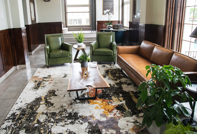 Baker’s brother, Seth, who has a degree in landscape design, helped with exterior landscaping, while lighting fixtures left from a makeover of St Mark’s Lutheran Church and some furniture from The Hotel Marsh and other historic local buildings were purchased by Aaron Baker for the building.