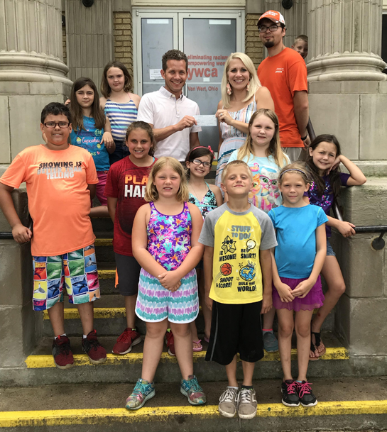 The YWCA of Van Wert recently received a donation from the Van Wert Service Club, whose mission is to provide service to others, especially youths, in the Van Wert community. Above, VW Service Club President Brad Greve presents YWCA Executive Director Kimberly Laudick with a check for $500 to support the Summer Food Program, which runs Monday through Friday through August 3. Looking on are program mentors and participating children. The mission of the program is to nourish the minds and bodies of children by providing nutrient-enriched meals during the summer. “The YWCA would like to thank Van Wert Service Club for their continued support and generous donation,” Laudick said. The YWCA is a United Way and Van Wert County Foundation funded agency.YWCA photo