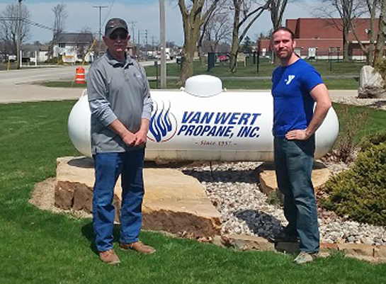 Van Wert Propane is sponsoring a Business Day at the YMCA’s Camp Clay Aqua Center on Tuesday, August 7. Because of the sponsorship, those using the Aqua Center that day will pay only a $3 admission charge. Shown with Camp Clay Director Kevin Morrison is Barry Crone of Van Wert Propane. YMCA photo