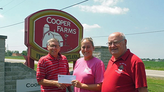 Kacy Wagner (center), human resource manager for Cooper Farms, presented a $1,000 grant to Van Wert County Historical Society Trustees Tom Mosier and Art Weber. The grant will be used to install new windows in the Welcome Center building.photo provided